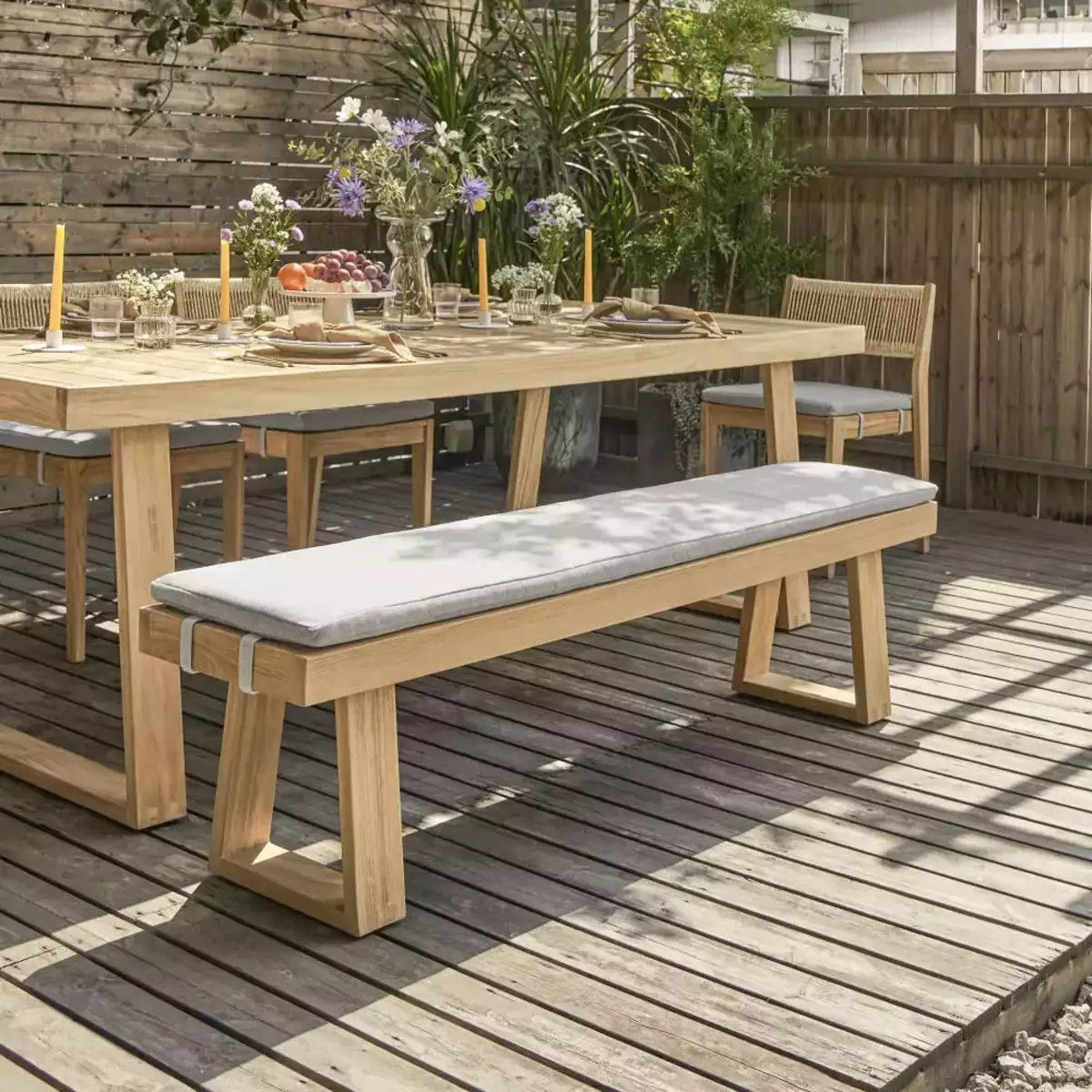 Manufactured in durable, sustainable grade-A teak, Tectona grandis.